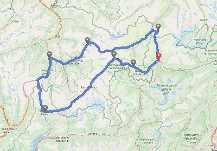 Von Mals über Ofenpass – Zernez – Chiavenna – Thusis – Davos – Nauders nach Mals